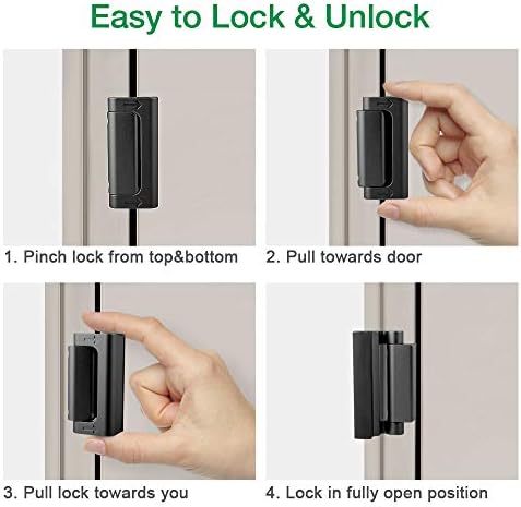 We have had many child locks on our doors but these ones are by far the best! We placed them up high so the kids can’t reach and they were extremely easy to install and use on a daily basis. Our kids figured out how to unlock our deadbolts early so these locks are amazing for keep our kids safe. LOVE!