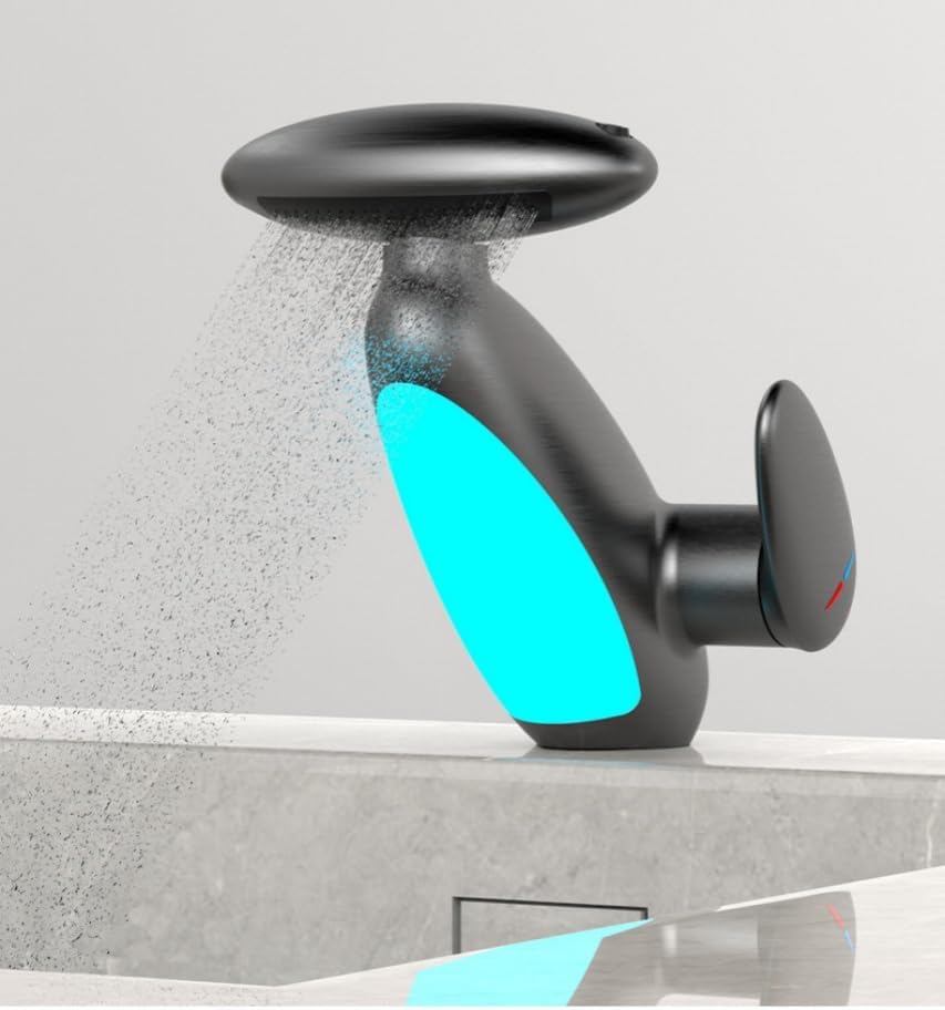 Unique & Modern Design – Sleek, futuristic look with built-in LED lighting adds a fun and stylish touch to the bathroom.Flexible & Functional – 360° rotating pull-out sprayer with four water flow modes makes washing and cleaning more convenient.Easy to Use – Smooth temperature control and straightforward installation process; works well for both practical use and décor.