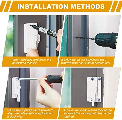 Feature | Easy Operation: you firstly need to use a drill to make holes in your window, and then take the screwdriver provided with this product to fix the window locks on the window so that you can effortlessly install the vinyl window sash lock to protect the safety of the whole family |